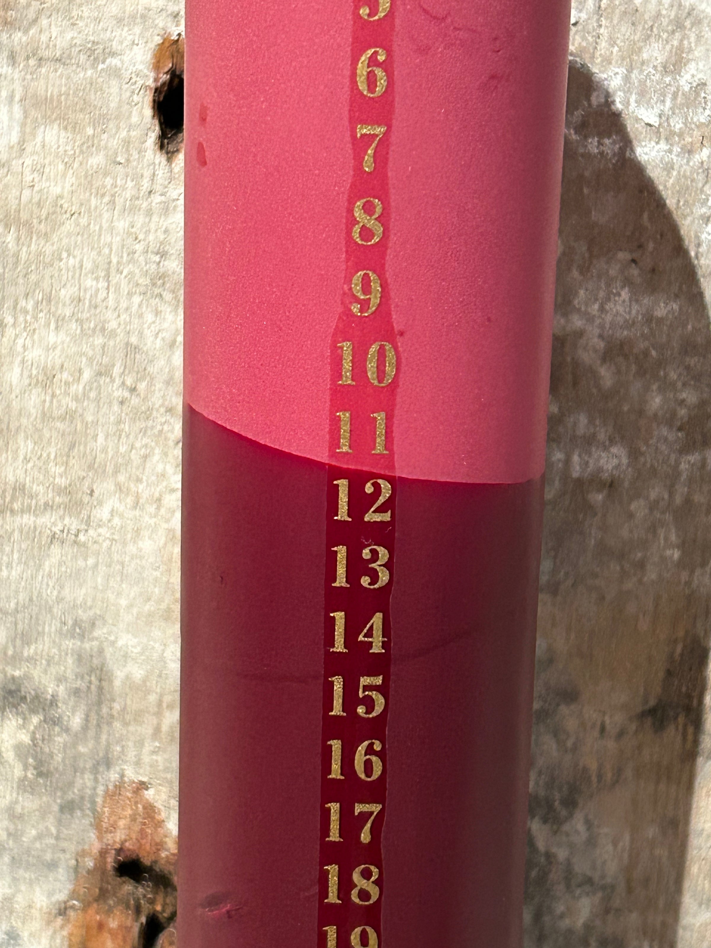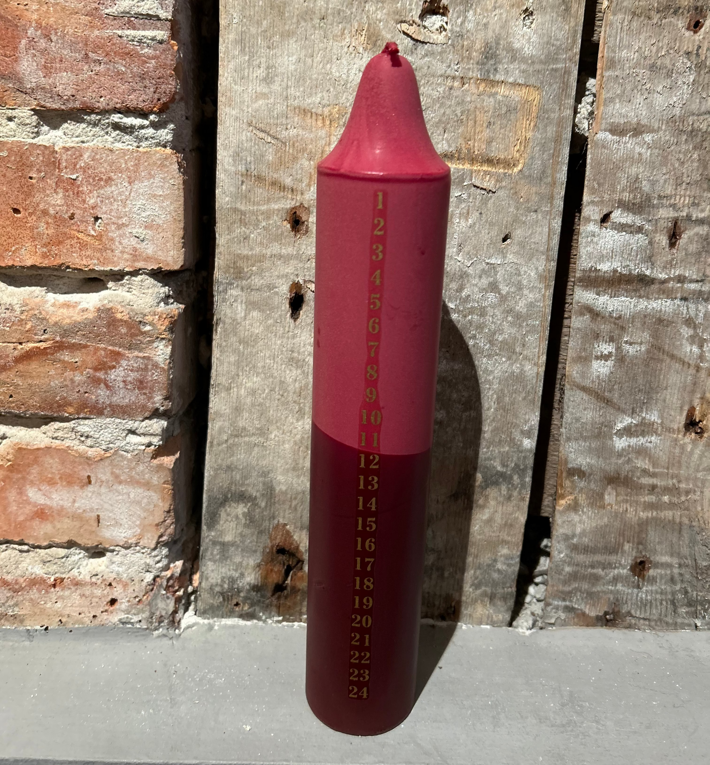 One of a Kind - smukt kalenderlys i flotte og klare farver. Nærmest en skulptur i sig selv. Kalenderlyset har en brændetid på ca. 50 timer, så du kan nyde det både morgen og aften i de mørke decemberdage. Brændetid mellem hvert tal er ca. 2 timer.