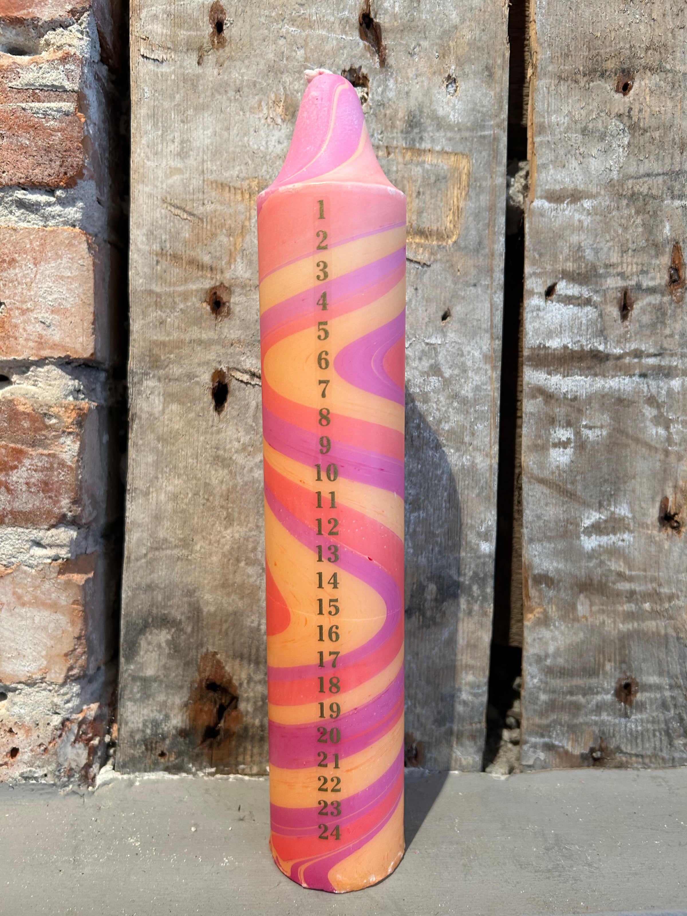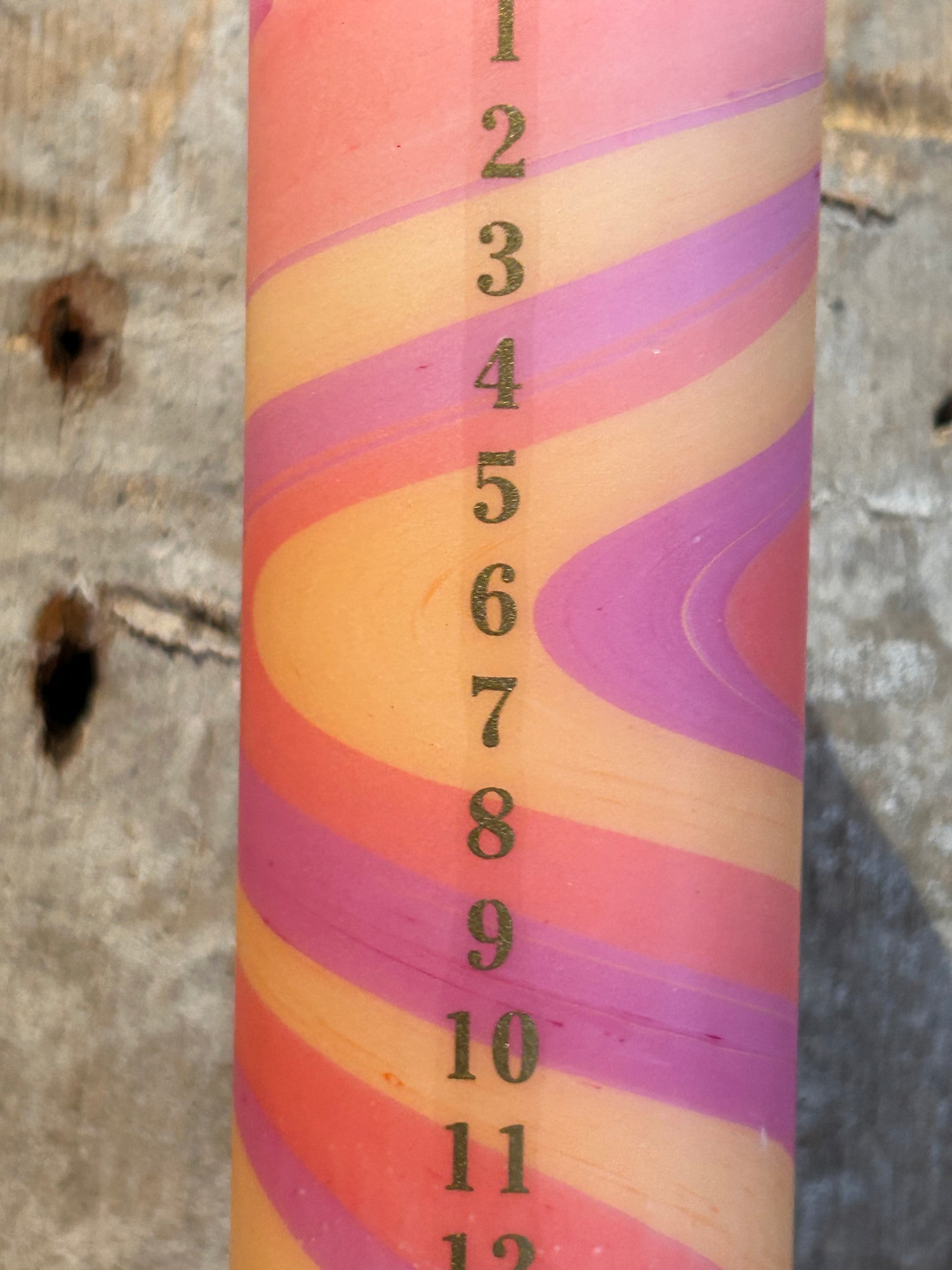 Kalenderlys med marmor-mønster · pink / rød / gul