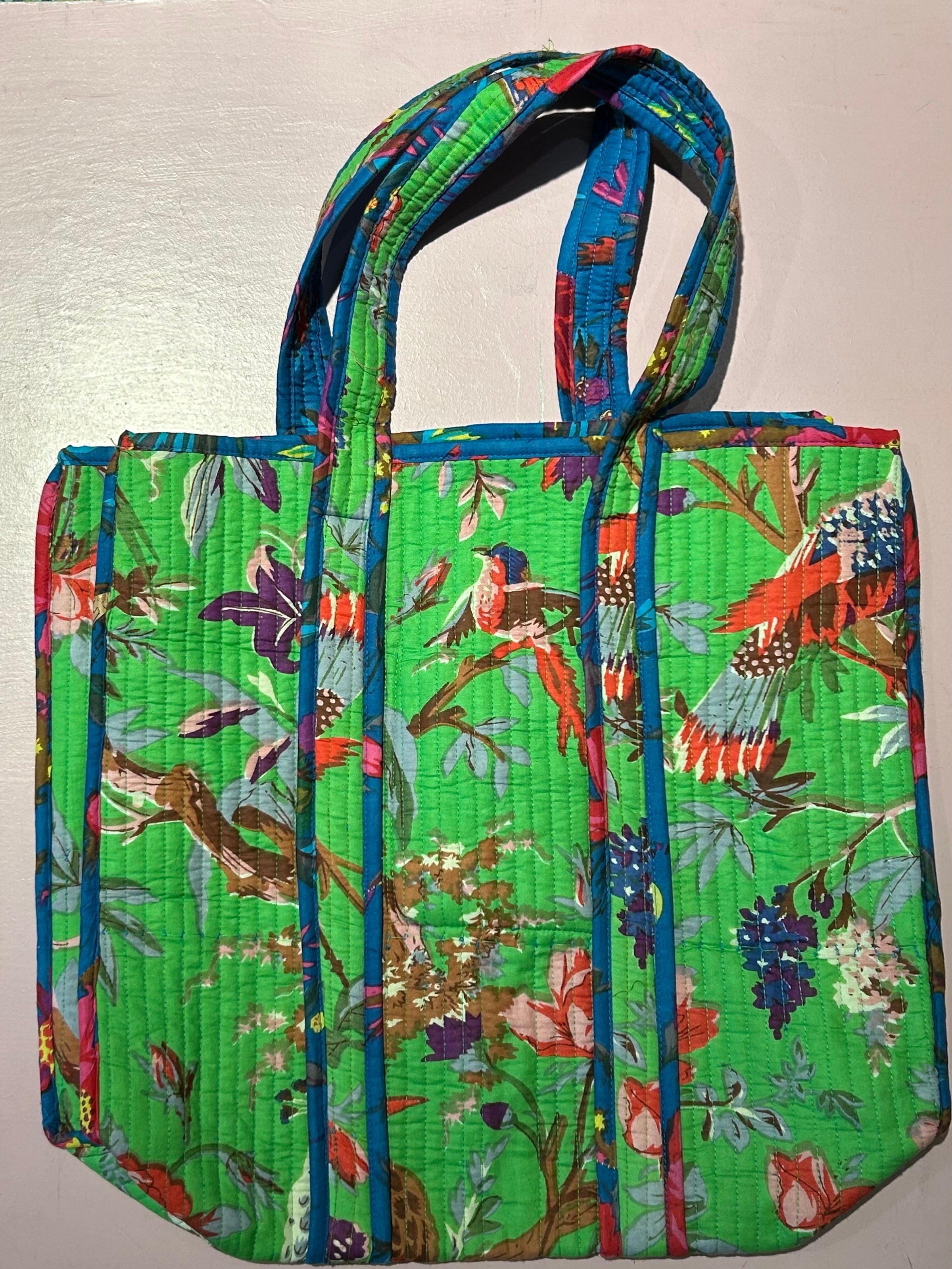 Tote Bag · Quiltet taske · grøn med fugle