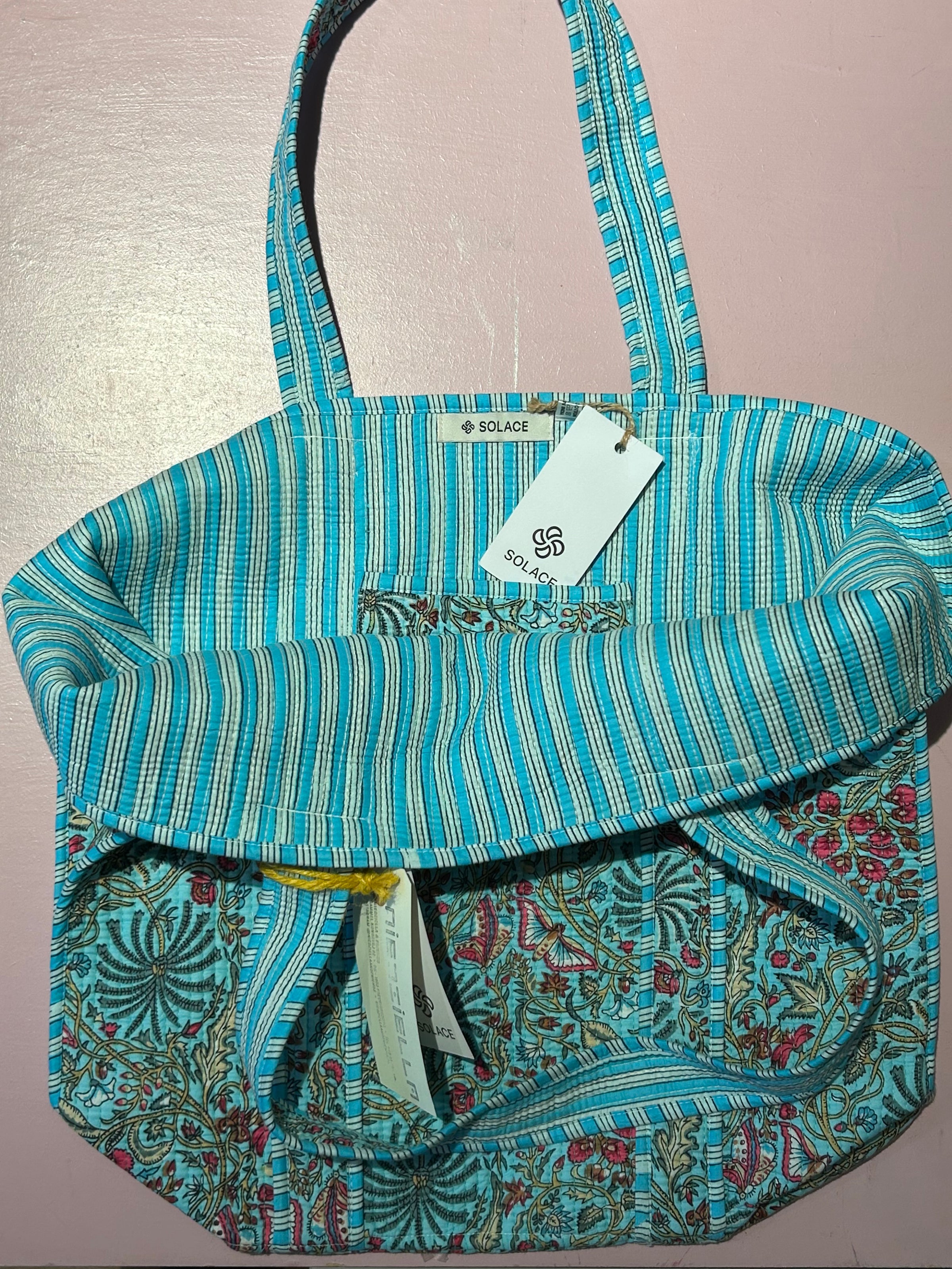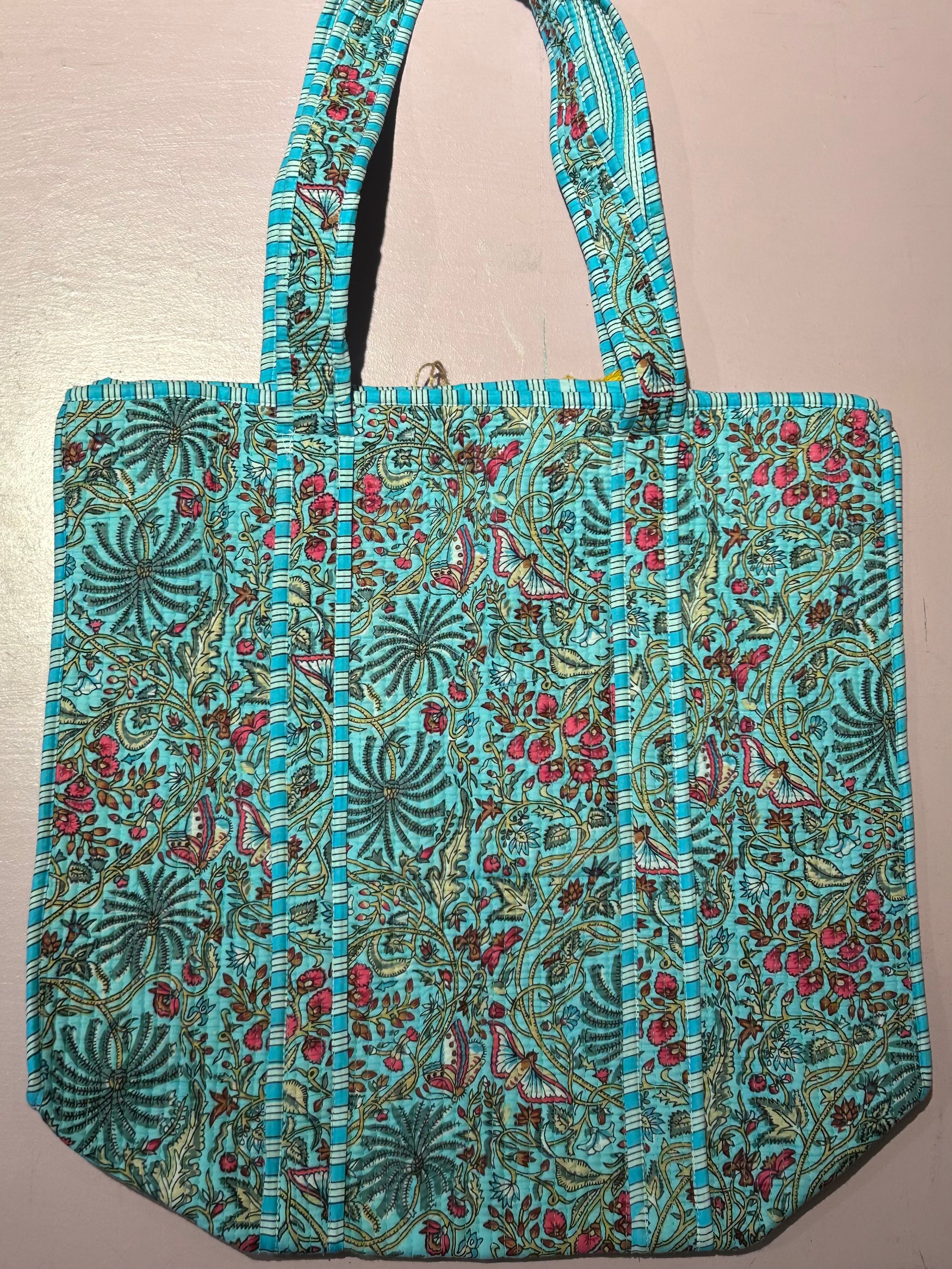 Tote Bag · Quiltet taske · turkisblå med grene og sommerfugle